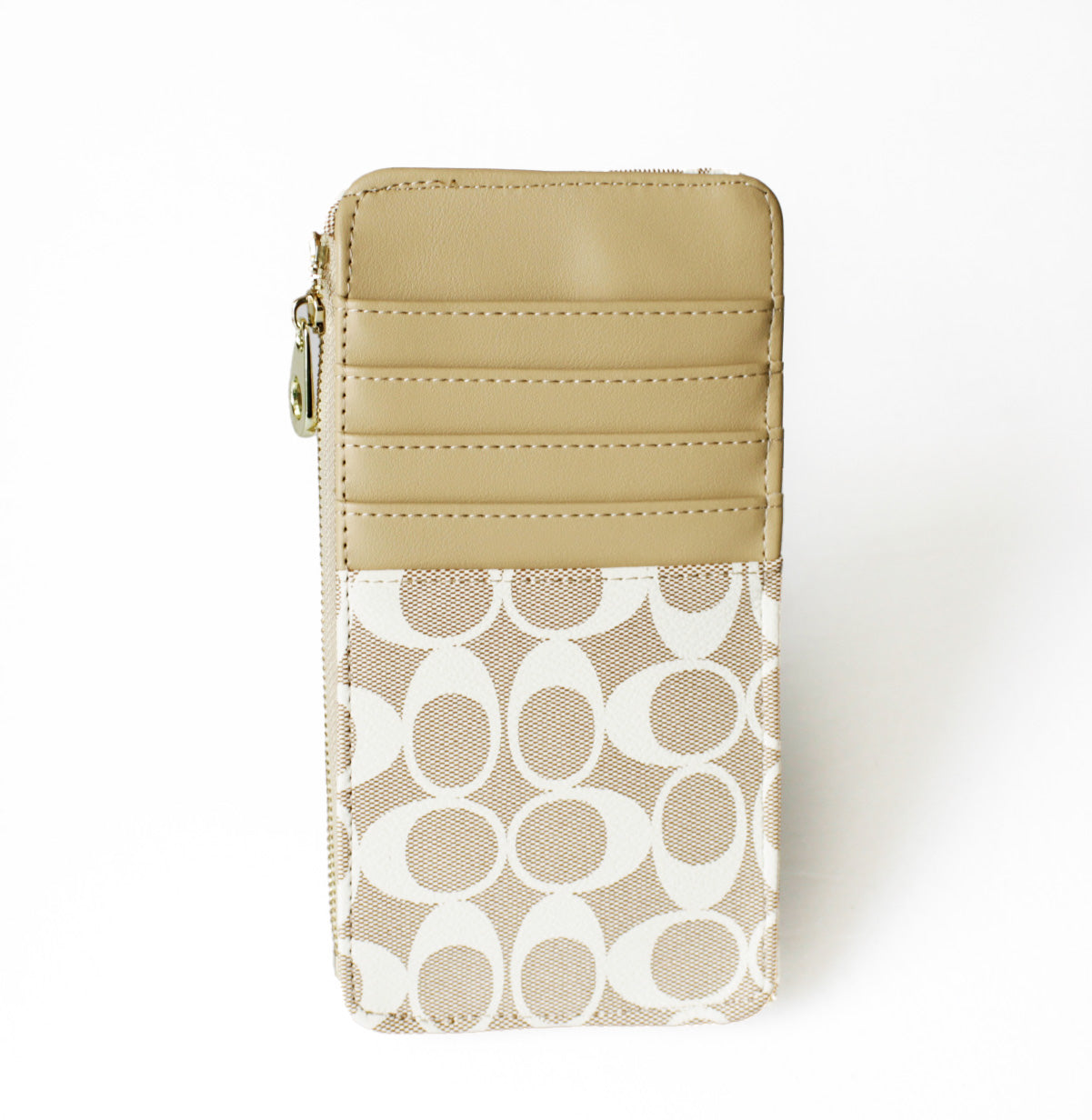 Incluye compartimentos frontales para tarjetas y un bolsillo principal con cierre metálico resistente, ideal para guardar billetes, monedas, documentos o llaves.