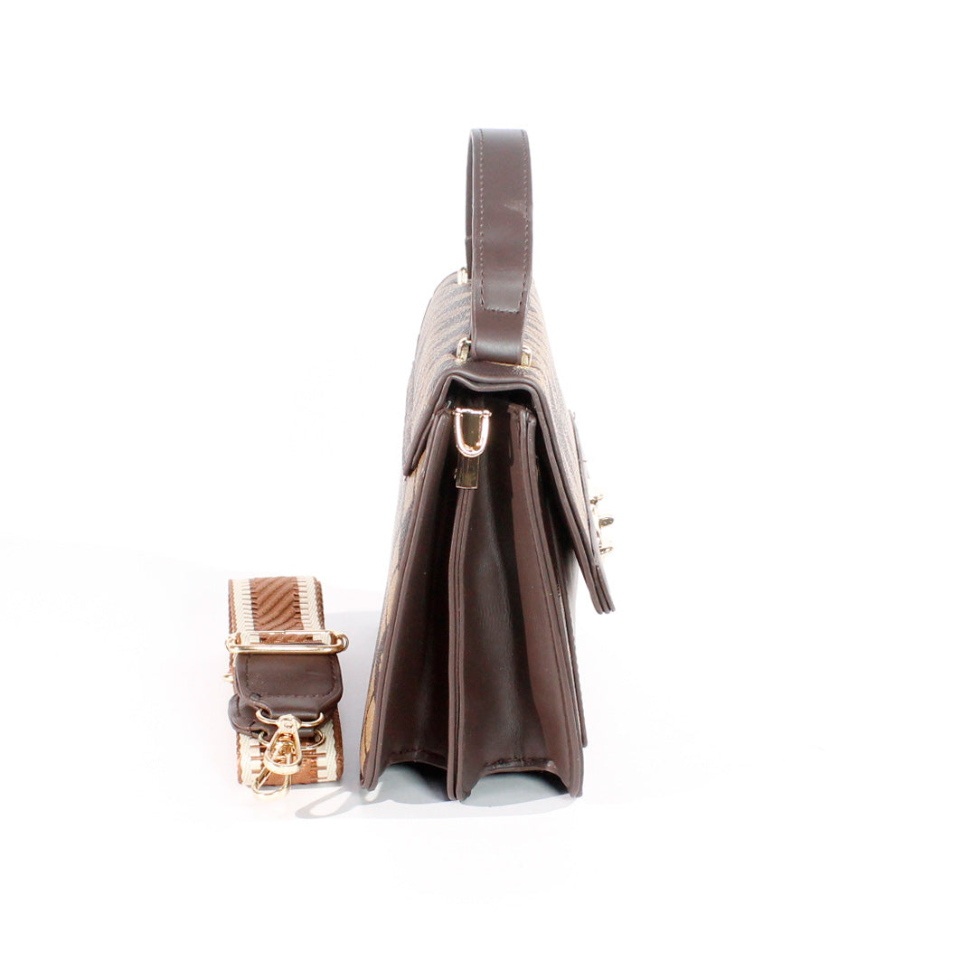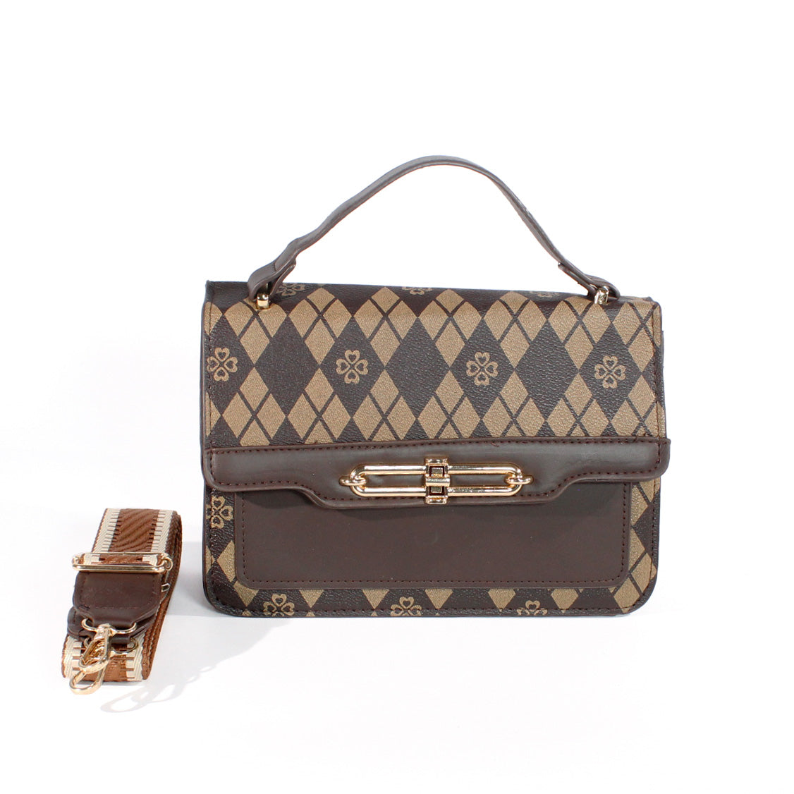 El Lumière es un bolso elegante y versátil que ilumina cualquier look con su diseño estructurado y sofisticado. Su estampado geométrico en tonos sobrios y los herrajes dorados aportan un estilo refinado, ideal para ocasiones especiales o para dar un toque chic a tu día a día. Gracias a sus asas cortas y correa ajustable, ofrece la comodidad de llevarlo en mano o cruzado, siempre con un aire moderno y distinguido.