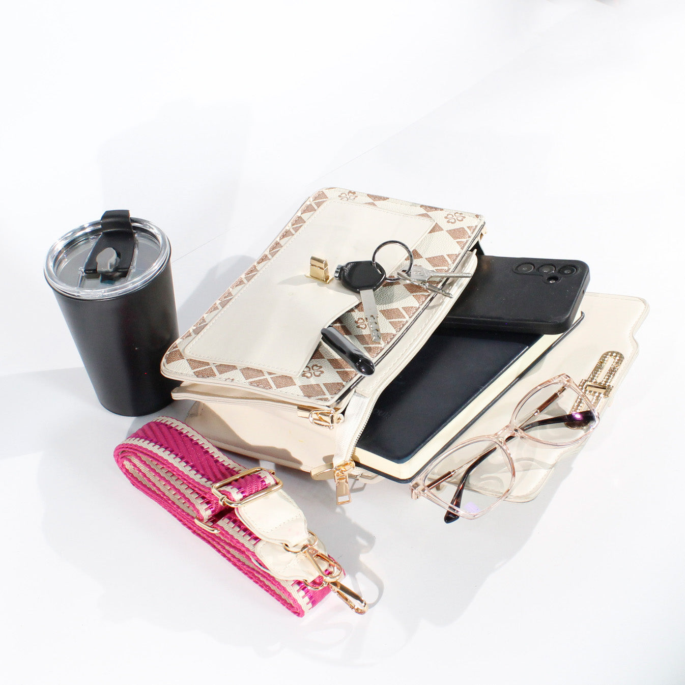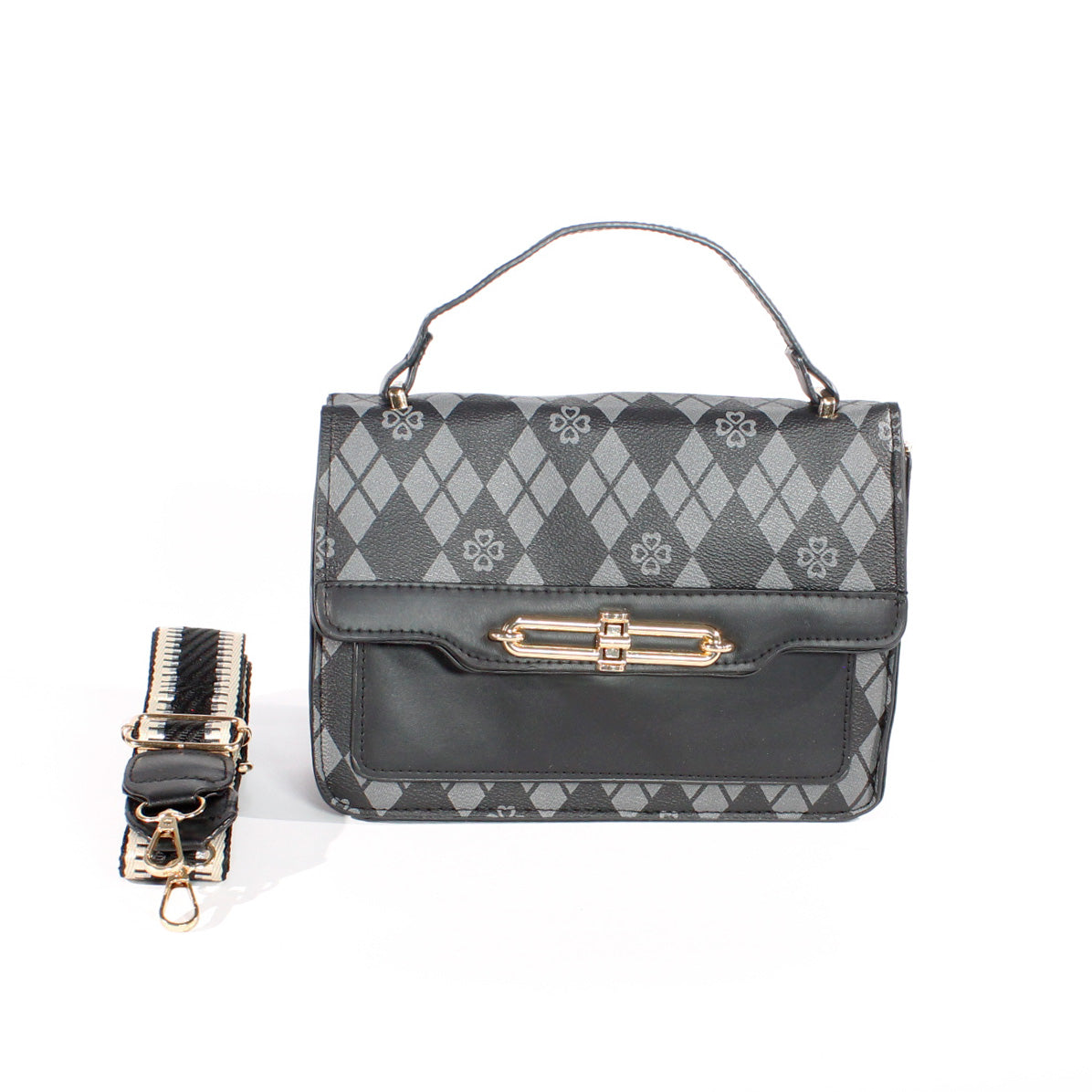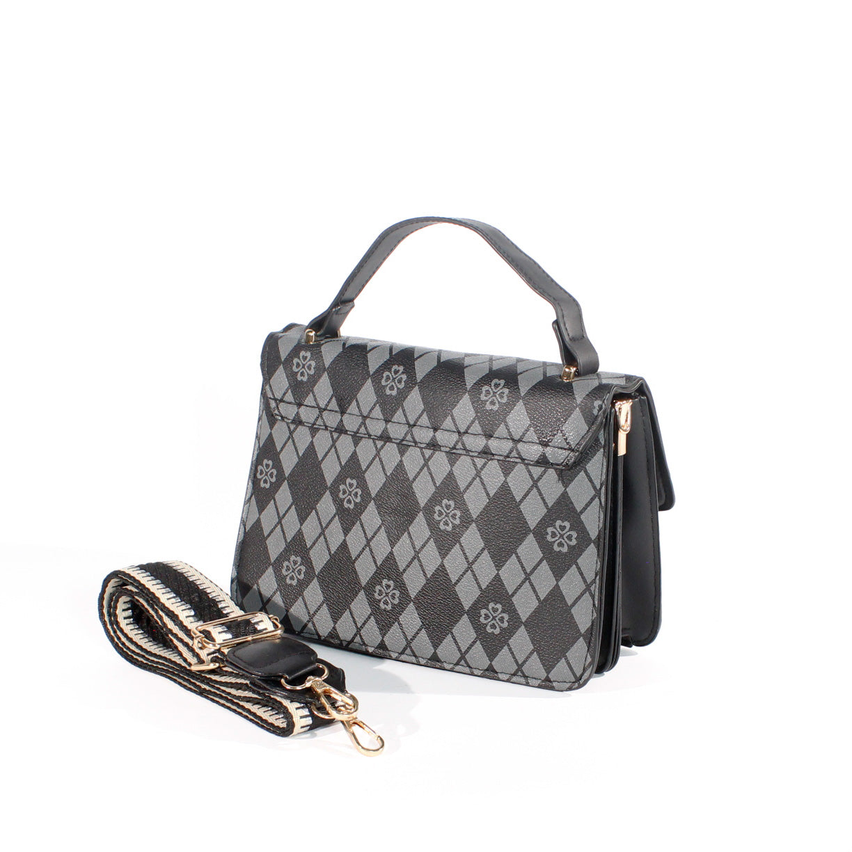 El Lumière es un bolso elegante y versátil que ilumina cualquier look con su diseño estructurado y sofisticado. Su estampado geométrico en tonos sobrios y los herrajes dorados aportan un estilo refinado, ideal para ocasiones especiales o para dar un toque chic a tu día a día. Gracias a sus asas cortas y correa ajustable, ofrece la comodidad de llevarlo en mano o cruzado, siempre con un aire moderno y distinguido.